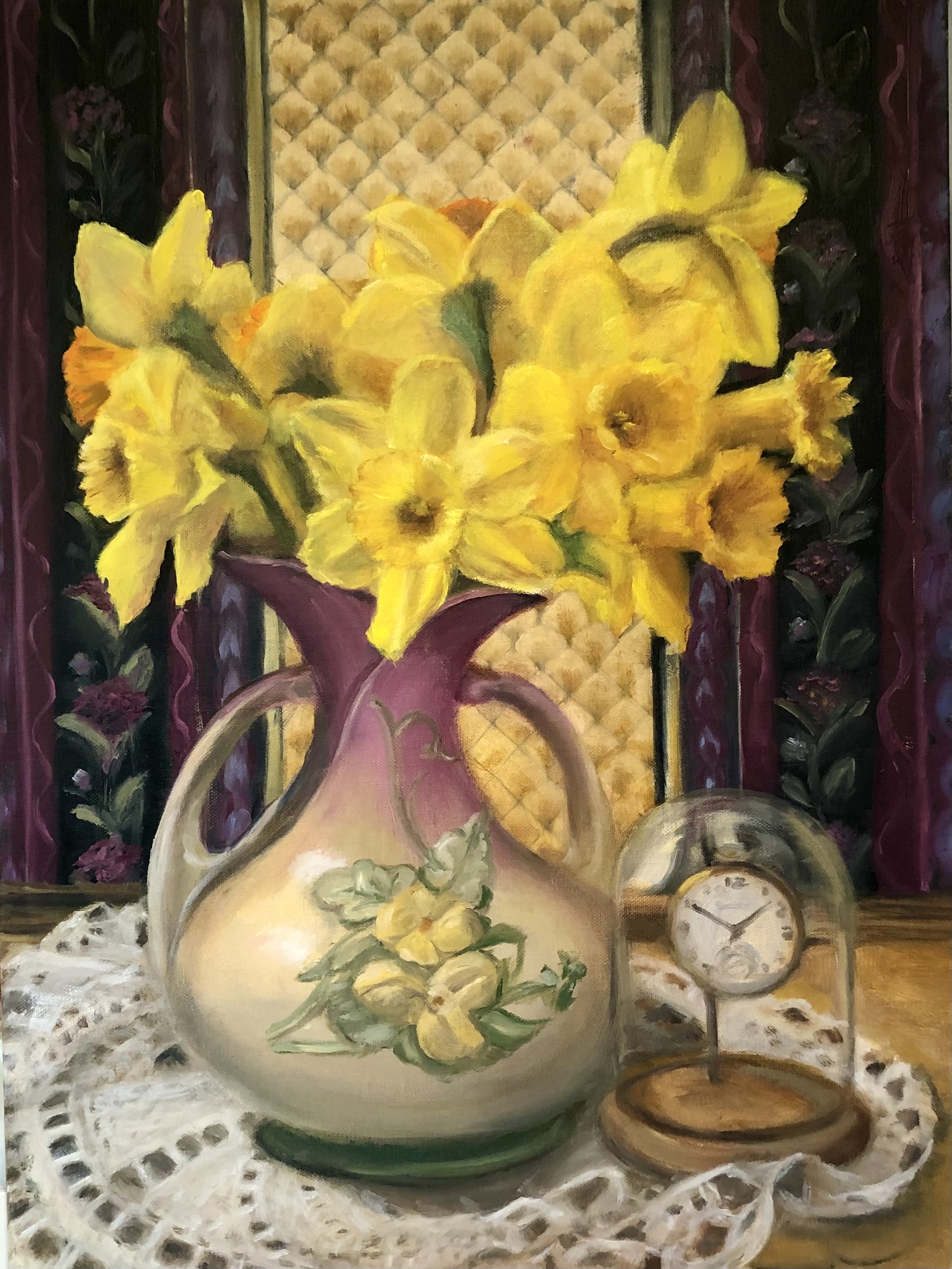 My father was a trained artist and a huge influence in my love for art. I think I was the only child in 1st grade to draw houses in three quarter perspective because he insisted on teaching me how when I was 5. I took art through high school but pursued mathematics degrees in college. I started painting when I inherited his art supplies when I was 30. I have been fortunate to find many excellent teachers to help me along the way, including Terry Strickland, Amy Peterson, and Dori DeCammelis. Since I retired in 2014 from a career in software development I have been free to paint full time. I paint primarily in oil, trying to capture the small things in life that give me joy. Many of my still life paintings feature flowers or vegetables that I grow in my garden. I enjoy portraits and figure painting as well.